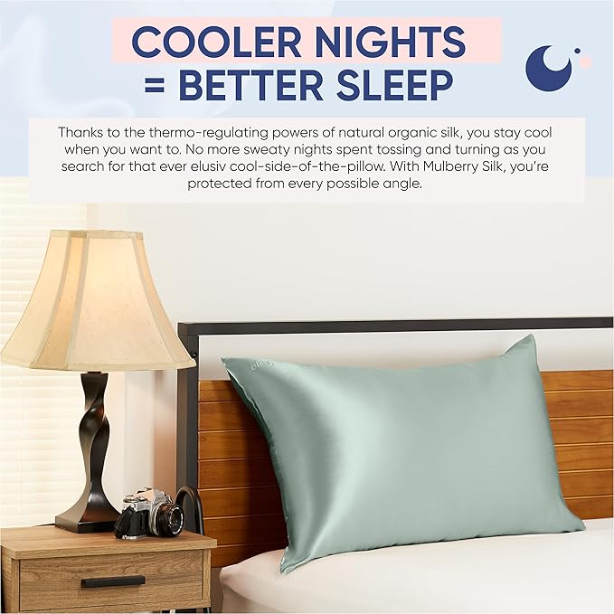 - BETTER & COOLER SLEEP: The temperature regulating properties of the Blissy silk pillowcase allow you to keep cool at all times during the night without the discomfort associated with fluctuating temperature and the constant tossing and turning for a restful night sleep.