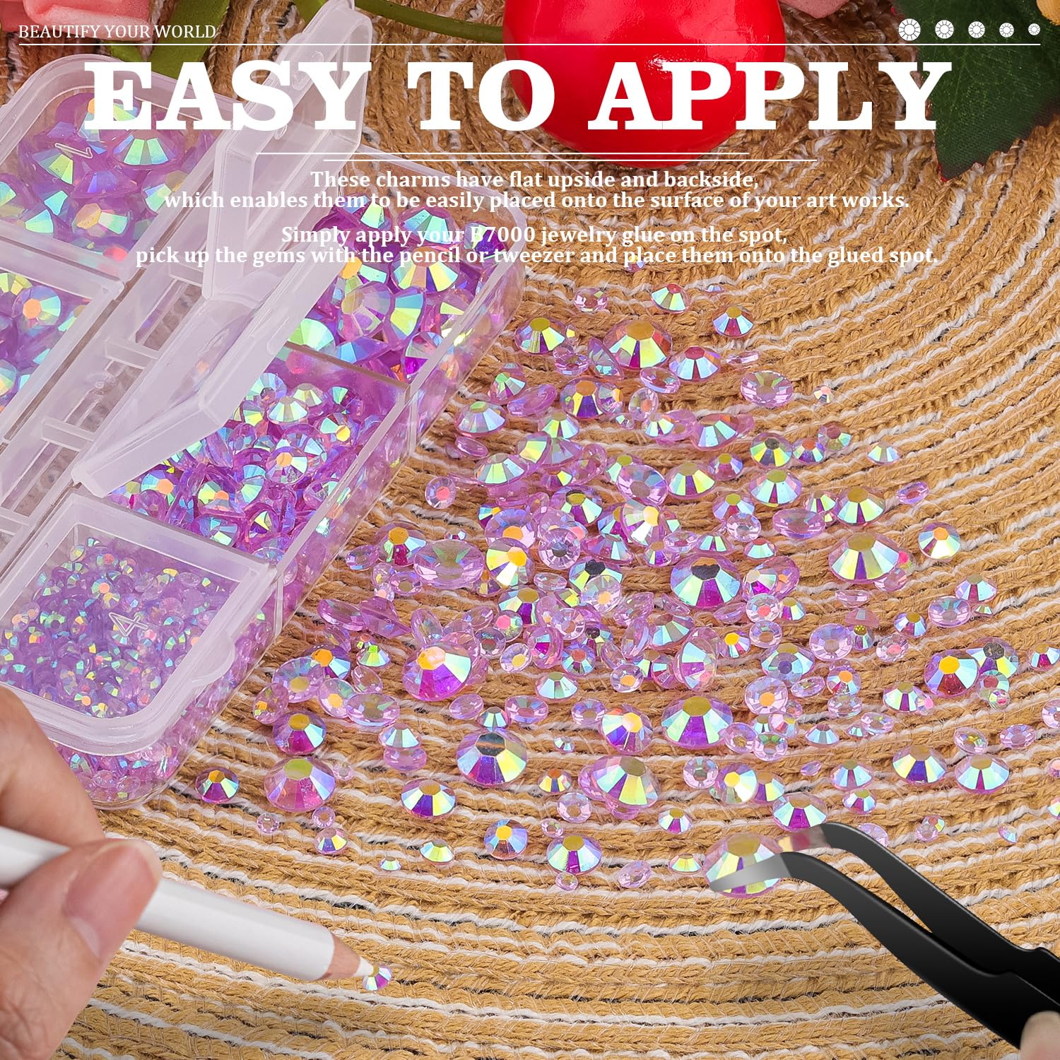 Resin Rhinestones Crafting, 2/3/4/5/6mm Flatback Jelly Rhinestones, 2 Boxes Transparent Lavender Purple AB Non Hotfix Gems for Bedazzling Crafts Mugs Tumblers Clothes Makeup Nail