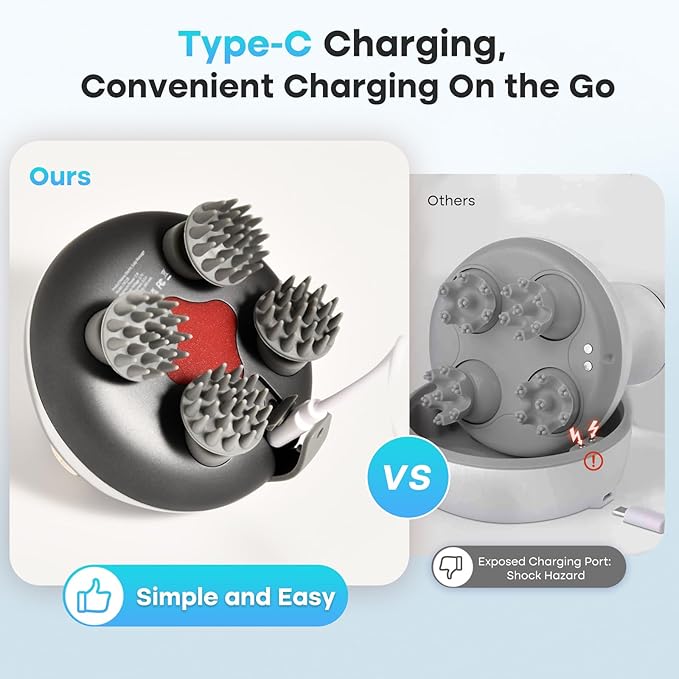 - Premium Quality & Easy to Use: The user-friendly head massager features one button for easy operation, providing convenience and time-saving benefits. With 3 modes, enjoy a personalized massage tailored to your needs. Convenient USB charging ensures continuous use, while the smart 10-minute auto-stop feature ensures a safe massage experience, preventing excessive use and safeguarding user health and safety. Tips: Do not insert your hands into the four massage heads while using the massager.