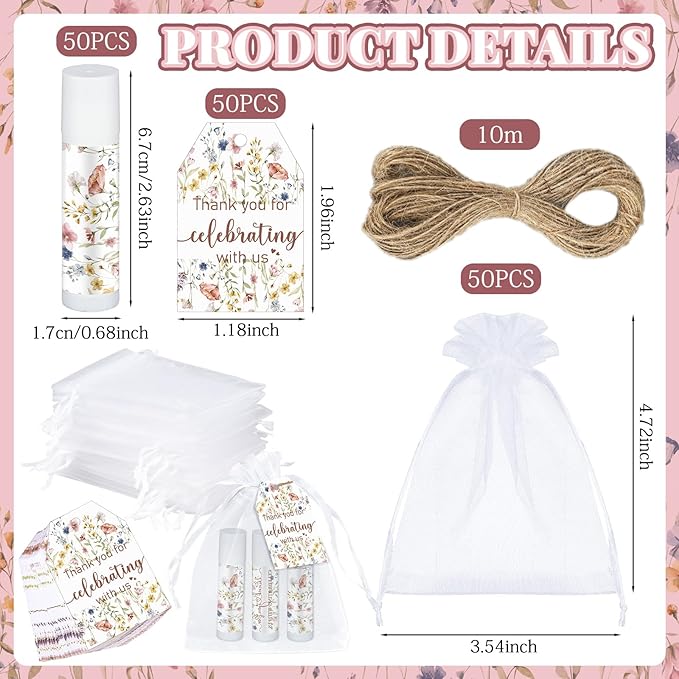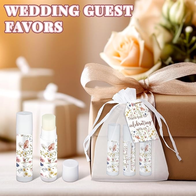 Dunzy 50 Pack Wildflower Party Baby Shower Favors Bulk Lip Balms Gifts Wedding Bridal Shower Favors Small Thank You Appreciation Gifts for Guests Women Employees Teachers Coworker Staff