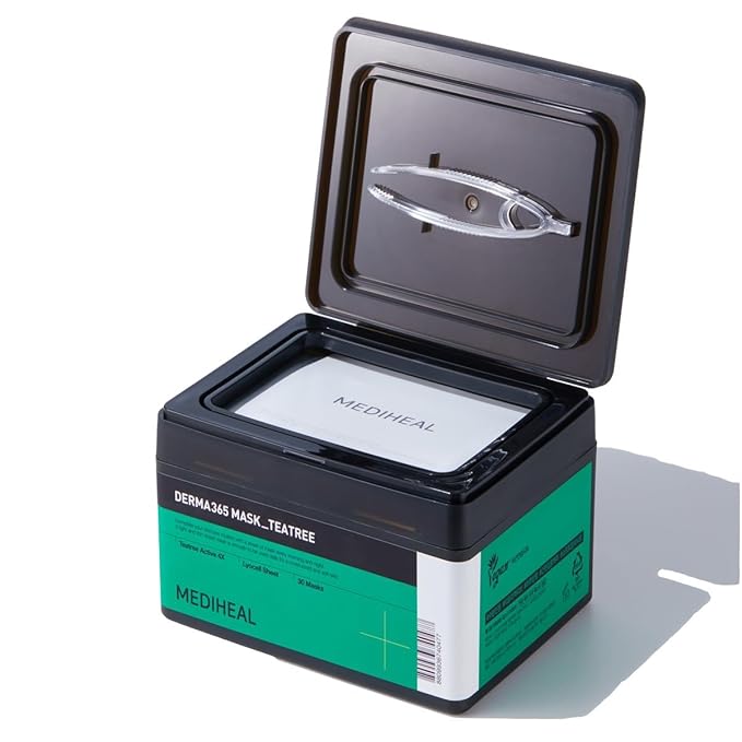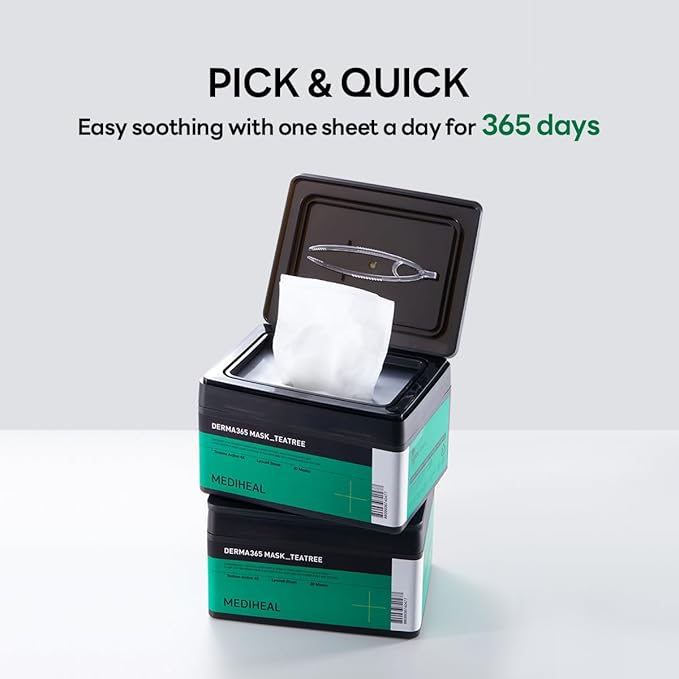 Mediheal Derma 365 Teetree Mask (30 Masks) - Daily Skin Care Mask for Deeply Comforting and Calming Skin with Teatree Active 4X