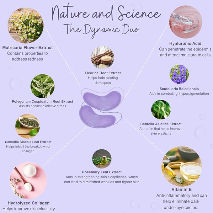 - 🌱 We understand how important the eye area is and our uniquely formulated masks were designed using clean and simple ingredients such as hydrolyzed collagen, hyaluronic acid, vitamins, proteins, flavonoids, antioxidants, and plant extracts.