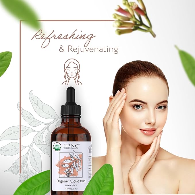 HBNO Organic Clove Bud Essential Oil - 4 oz (120ml) - USDA Certified Organic Clove Bud Essential Oil, Soap Making, DIY, Fragrances, Diffuser
