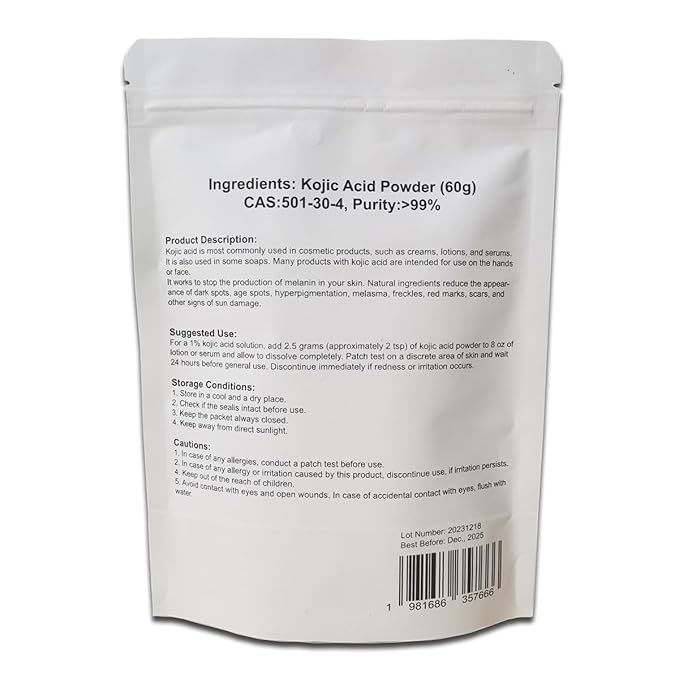 - 60g(2.1OZ) net weight kojic acid powder