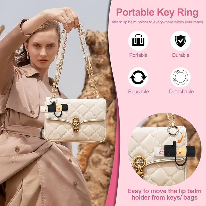 - 👍 【No More Losing Lip Balm】- Easy to use and attach the keychain chapstick holder to everywhere within your reach. No more digging through your bag to find chapstick. And no more worrying about losing your lip balm.