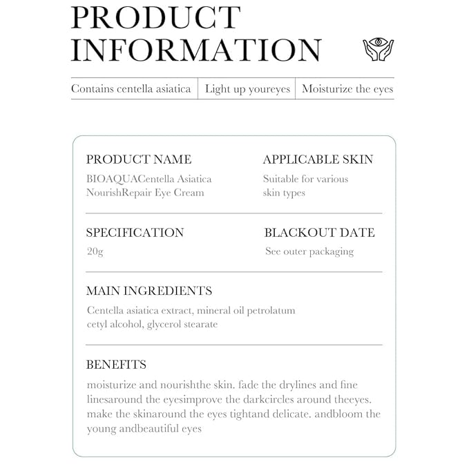 BIOAQUA Centella Asiatica Nourish Repair Eye Cream Soothing Oil Control Anti-Acne 20g / 0.7oz