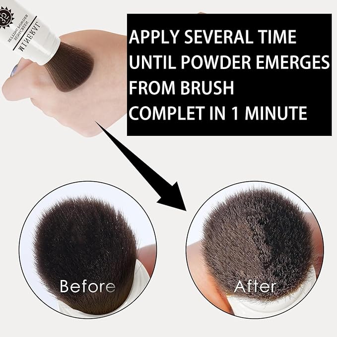 - ✿【Unique Brush Design】Equips with high-density quality brushes dispenses a precise amount of setting powder. After applying makeup, take off the cap, slide down the brush sleeve, brush required setting powder on your face, pull up the plastic sleeve and cover the cap after finished.