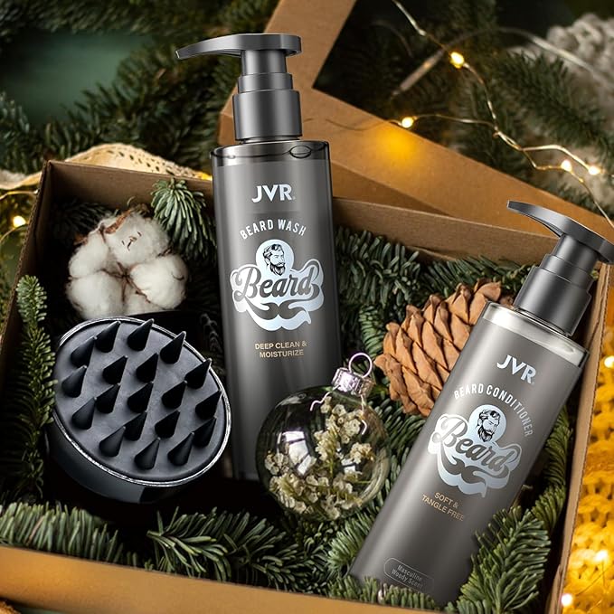 JVR Beard Wash and Beard Conditioner for Men, Beard Shampoo Cleanse and Reduces Frizz, Soften & Strengthens, Organic with Coconut, Aloe, Provides Shine for Dry & Coarse Beards, Beard Care (6.7oz)