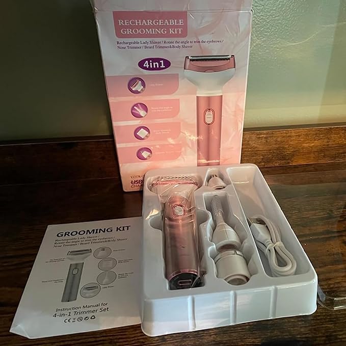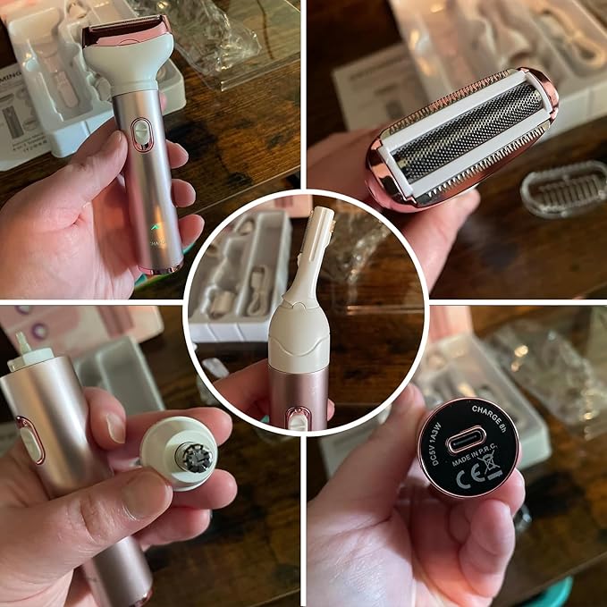 Electric Razor for Women, Hair Trimmer for Bikini Legs Womens Shaving Eyebrow Lips Body Face Beard Mustache Nose Arm Armpit Facial Hair Removal for Women's Shaver 4 in 1 Kit, Type-C Charging Port