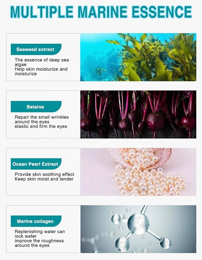 - Potent Ingredients: Featuring Albizia Julibrissin Bark Extract, Feverfew Extract, Hyaluronic Acid, Gold, Vitamin E, Collagen, Menthol, and Chondrus Crispus Powder for a comprehensive eye care experience.