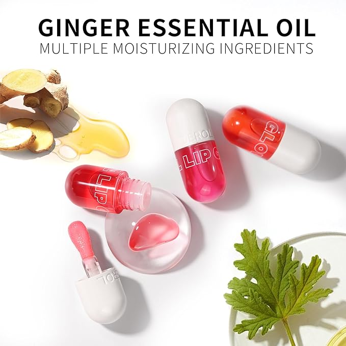 Lip Plumper Raspberry (0.19 Fl. Oz.) Lip Gloss Natural Lip Oil 2in1 Lip Care Serum for Beautiful Fuller-Looking Lips, Hydrating & Reduce Fine Lines,Peach