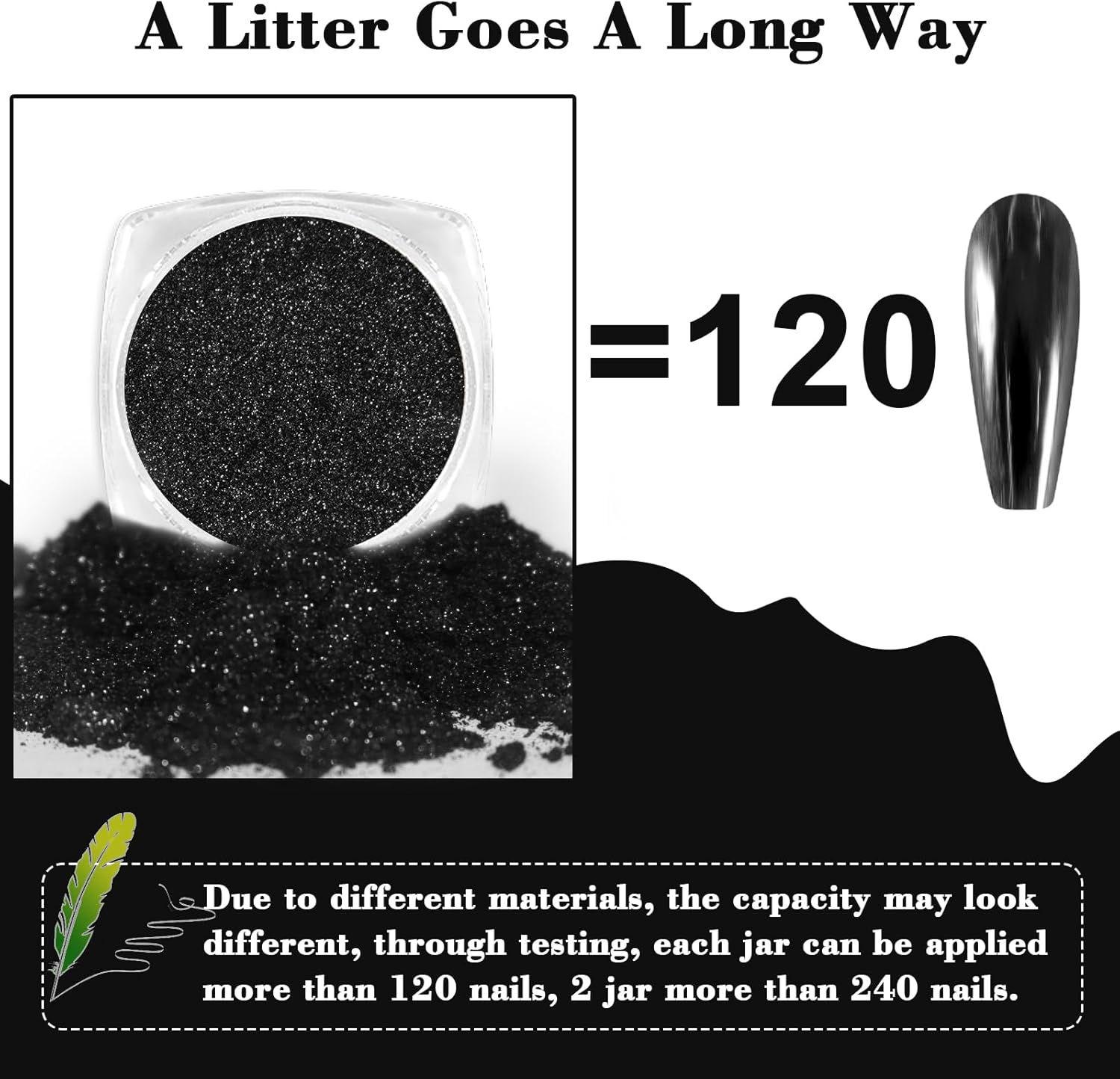 Allstarry Chrome Nail Powder 2pcs Black Silver Metallic Mirror Effect Dust Glitter Glazed Manicure Decoration Reflective Pigment for Gel Polish Nail Art Decoration- Milky Trajectory