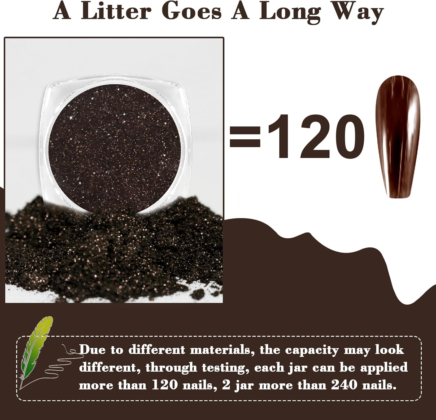 - Great Mirror Effect: It is an ideal brown chrome nail powder kit to create a mirror effect, water ripple effect, bubble effect, star effect for your acrylic extensions, gel extensions, and gel polish manicures. The chrome glitter has delicate powder and attractive luster, which makes it have an excellent mirror effect. Create your unique nail art with Allstarry holographic chrome manicure pigment