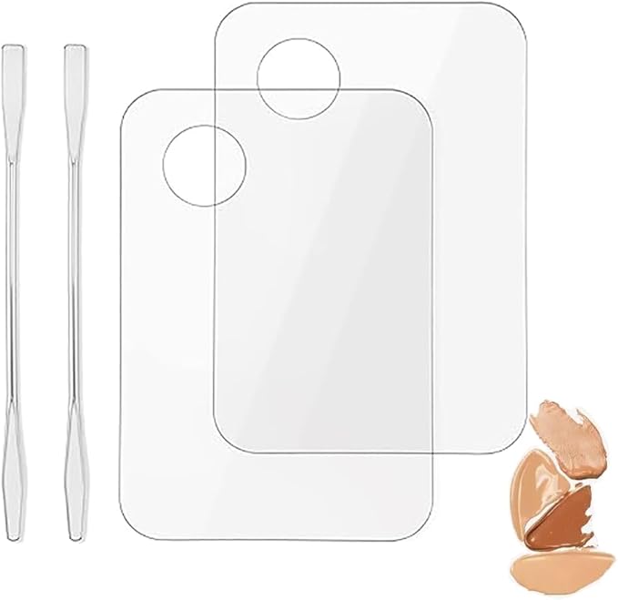 - Quality Material: The foundation mixing pigment set are made of acrylic, sturdy and lightweight, blunt edges, no rust, no deformation, with wet paper towels or water can be quickly cleaned up, the makeup spatula is made of stainless steel, double-ended design. There is a protective film on both sides of acrylic, please remove the protective film before use.
