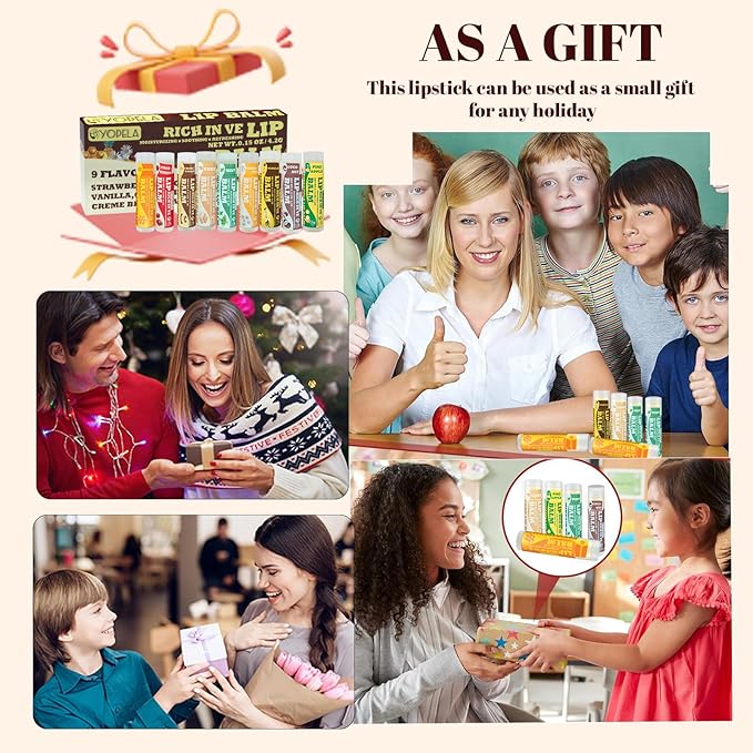 - Indulge in 9 Exquisite Flavors - Treat your lips to a variety of delightful flavors including Strawberry, Cremebrulee, Chamomile, Cake, Pineapple, Mint, Vanilla, Honey, and Coconut. Perfect for the whole family and makes a wonderful lip balm