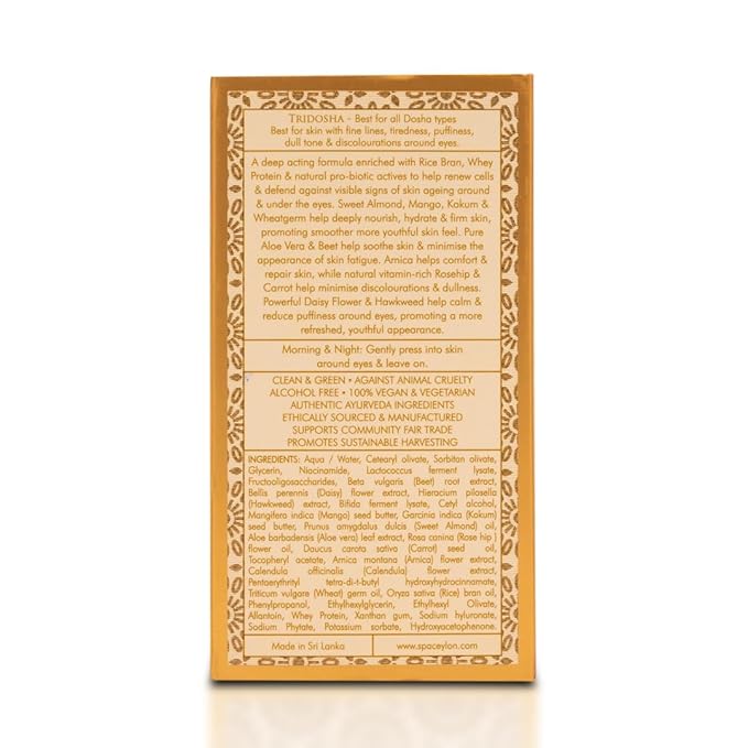 - Nourishing and Hydrating: Sweet Almond, Mango, Kokum, and wheatgerm deeply nourish, hydrate, and firm the delicate skin around your eyes, promoting a smoother and more youthful feel.