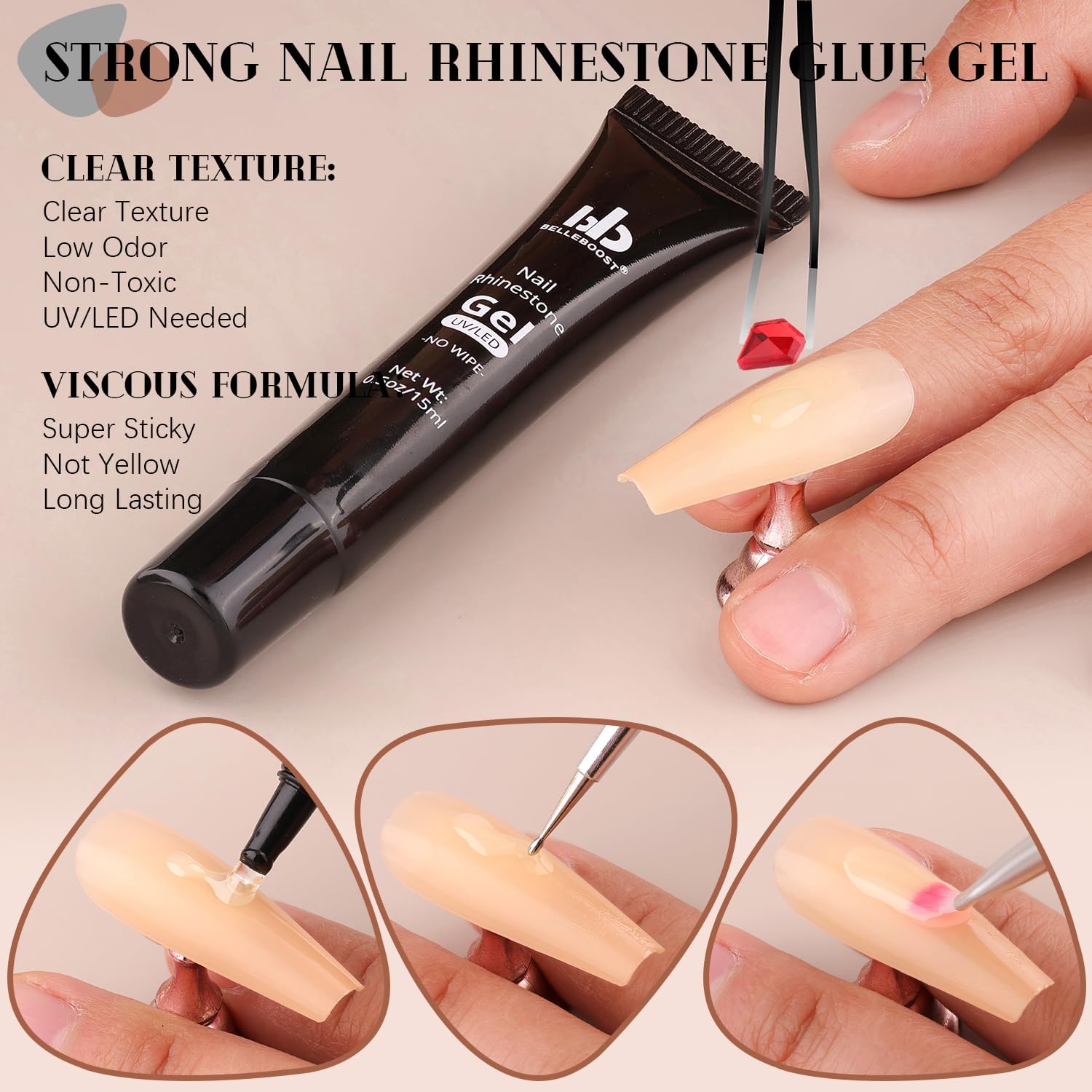 - đź’ŽADHESIVE GEL GLUE: The rhinestones glue gel uses a special, non-toxic and eco-friendly formula with strong tackiness, adhesion, and fluidity for easily applying decorations. It is a type of UV gel glue. After proper curing under a UV/LED lamp, the glue dries clear with superior bonding strength that can last a few weeks without falling off. With the designed tip, you can easily and conveniently apply the glue to the nail bed or the surface of false nails.