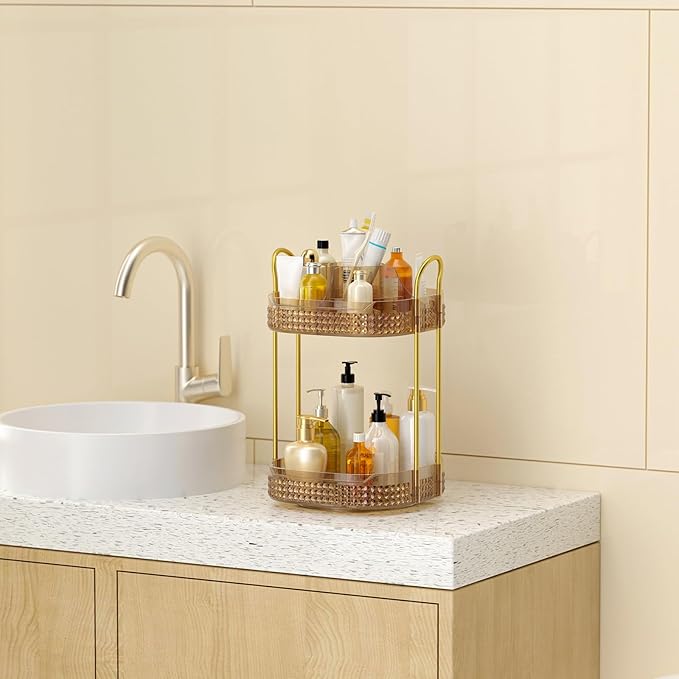 - 2 Tier Lazy Susan Organizer: Skincare organizer and storage comes with brush holder and compartments at the top, the lower layer is designed with a height of 8.27 inches, fearless of high bottles, to meet more storage needs. Let you change the storage space from square to cube, save countertop area
