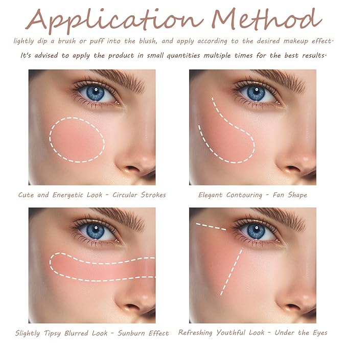 - Multifunctional Beauty Tool: The highly pigmented blush, used with the included brush, can be applied to the cheeks for a flushed appearance. Beyond serving as a blush, the palette doubles as an eyeshadow, making it a versatile addition to any beauty collection.