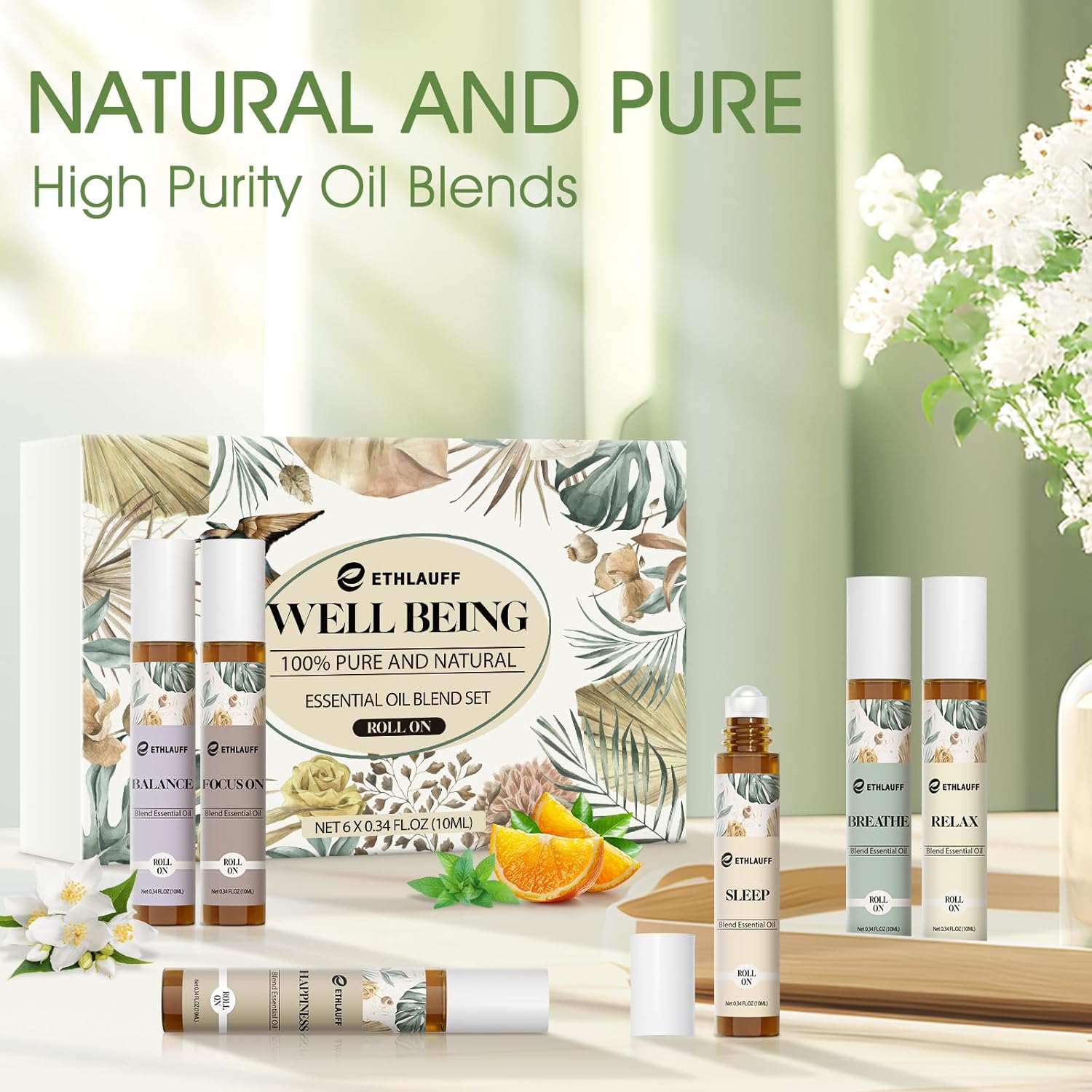 - Self Care Gifts for Women & Men: These essential oil perfume set contains 6 * 10 ml pcs, each oil comes with a glass rollerball, easy to carry.With 6 benefits(Relax, Sleep, Balance,Breathe, Focus on, Happiness), there is always one for you. Perfect for refreshing, stress relief, smooth breathing and more.