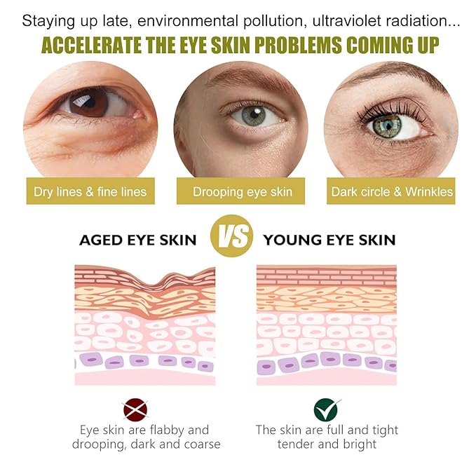 - 【Eye Skin Care Kit】Retinol eye creams and 24K gold eye mask for dark circles and puffiness are designed to provide effective nutrition for the skin under the eyes and act as a fortress to relieve and restore sensitive areas. Eye cream for winkles and under eye patches eye pouch care for women and men is an important supplement to your daily skin care.