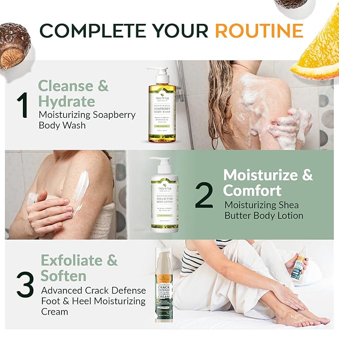Tree to Tub Foot Cream for Dry Cracked Heels and Feet - Foot Lotion for Dry Cracked Feet, Non-Greasy Moisturizer Urea Cream w/Softening Shea Cocoa Butter, Citrus Foot Care for Women & Men