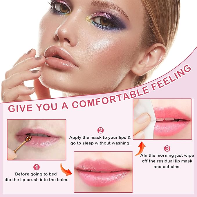 - 【Cute Design】Bee lip balm's lip brush is a new one-piece anti-lost design. The lip brush is hidden inside the lip mask cover, making it easy to use and carry around. If you keep using it, it will bring unexpected moisture to your lips. And the effect of reducing lip lines!