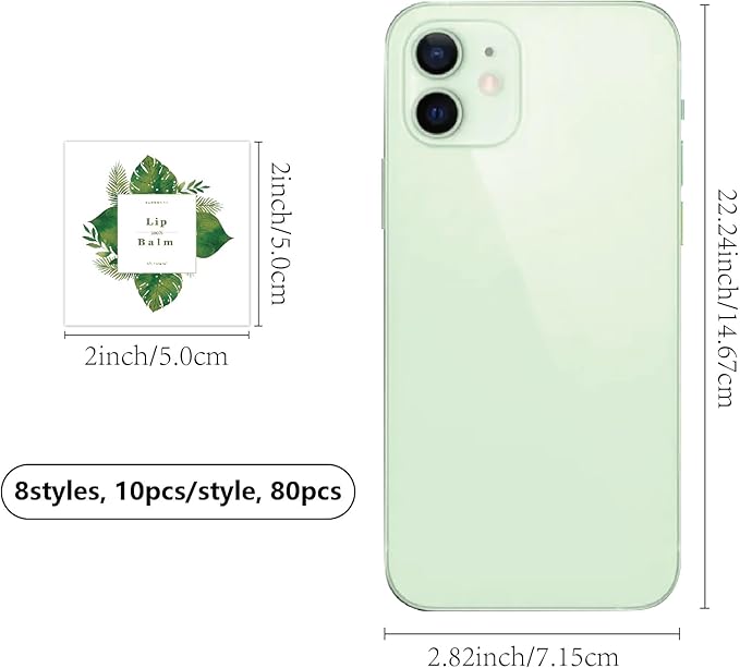 - SIZE: square custom lip balm diy label sticker about 1.96×1.96inch (5x5cm), 8 styles, 10pcs/style, 80pcs/set.