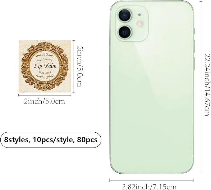 - SIZE: square custom lip balm diy label sticker about 1.96×1.96inch (5x5cm), 8 styles, 10pcs/style, 80pcs/set.
