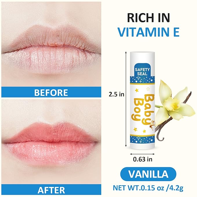- Baby Shower Favors for Guests: There are 60 pcs vanilla flavor lip balms, which are designed with lovely patterns and [Baby Boy-Thank You For Celebrating With Us] words. This lip balm will be a great gift for baby shower party to show your gratitude to guests