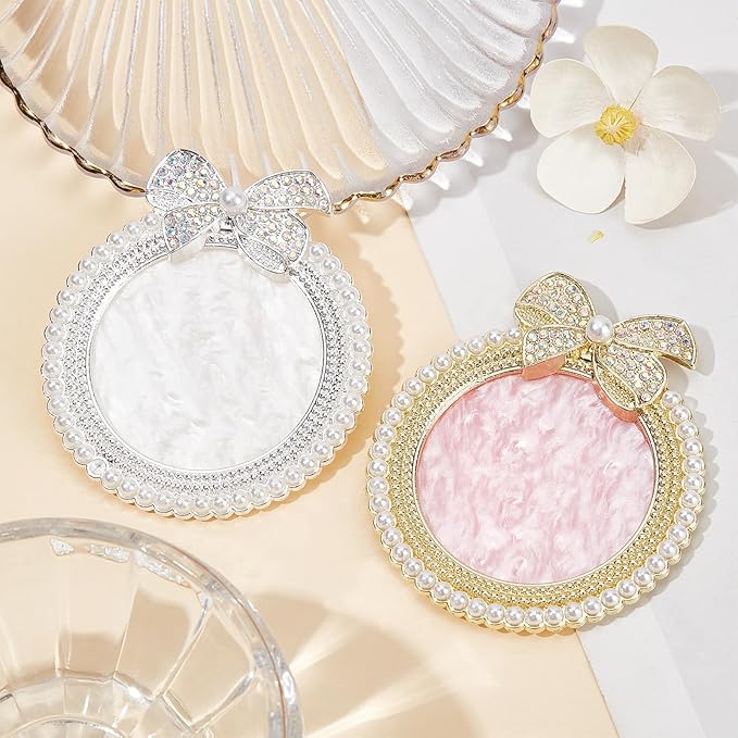 NICENEEDED 2 PCS Resin Nail Art Palette, Nail Art Painting Mixed Color Makeup Palette with Pearls, Rhinestone Bowknot Edge Nail Polish Palettes Nail Art Display Board for Nail Salon