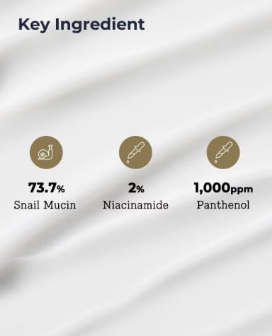 - INGREDIENTS: 73.7% Snail Secretion Filtrate, Sunflower Seed Oil, Hexanediol, 2% Niacinamide, Water.