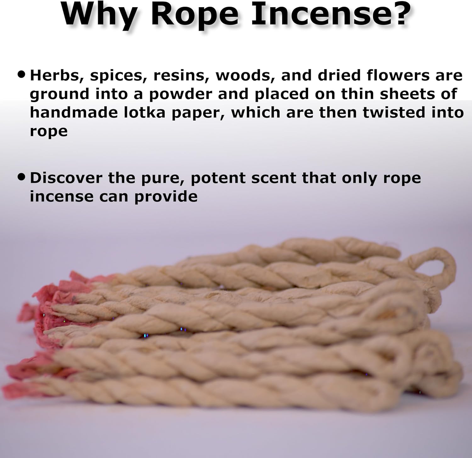- INCENSE AND INCENSE HOLDER - Our handcrafted incense holder is designed to accommodate both our incense sticks and incense ropes