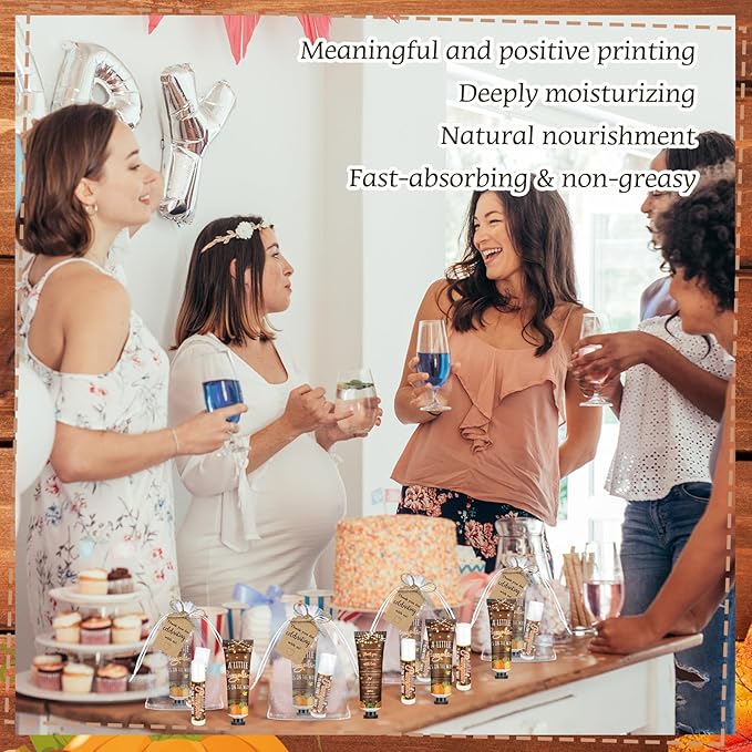 50 Sets 200 Pcs Baby Shower Hand Lotion and Lip Balm Gift Theme Baby Shower Party Favors Travel Size Hand Lotion and Lip Balm Bulk with Organza Bags Tags(Rustic Pumpkin)