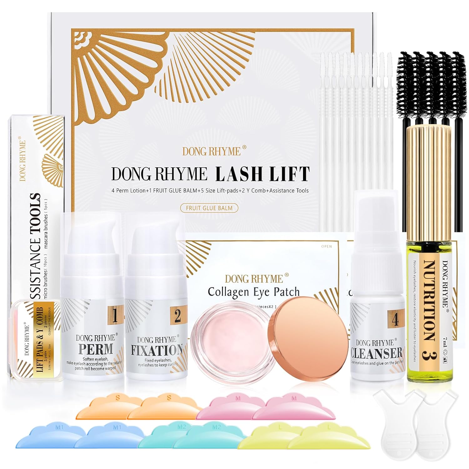 - 2025 New Collagen Lash Lift Kit by DONG RHYME: Include 10% collagen ingredient, A service that lifts, lengthens, and curls your natural lashes without damage. Without extensions 100 percent your natural lashes. The latest upgraded fittings are paired with a stronger and more effective lash lift glue balm, making the operation even more easier!