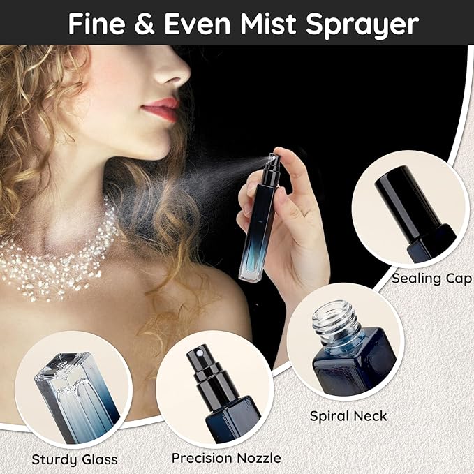- 【Fine Mist Atomizer】With the utilization of high precision nozzle, these perfume bottles provide a fine and even mist spray, it is great for dispensing perfume.
