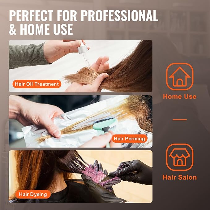 - Perfect for Salon/Home Use: VEVOR lonic hooded hair steamer is not only the ideal choice for professional hair salons, but also a reliable assistant for home hair care: hair oil treatment, perming, and dyeing. Enjoy salon-level care for your hair in the comfort of your own home.