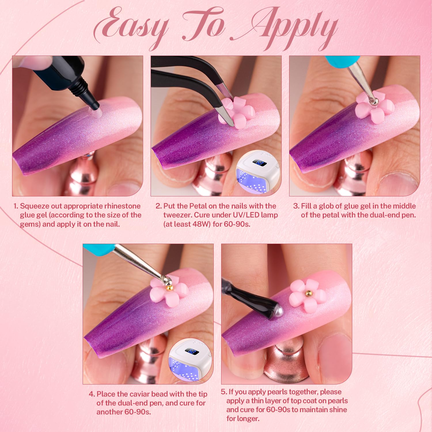 - ✿ Shining Nail Rhinestones Kit -- The 2-4mm nail rhinestones and ABS pearls are wildcard to add glitz to most of your stylish nail designs. Besides, the pickup pen and tweezers will be a good helper for applying your big and small embellishments.