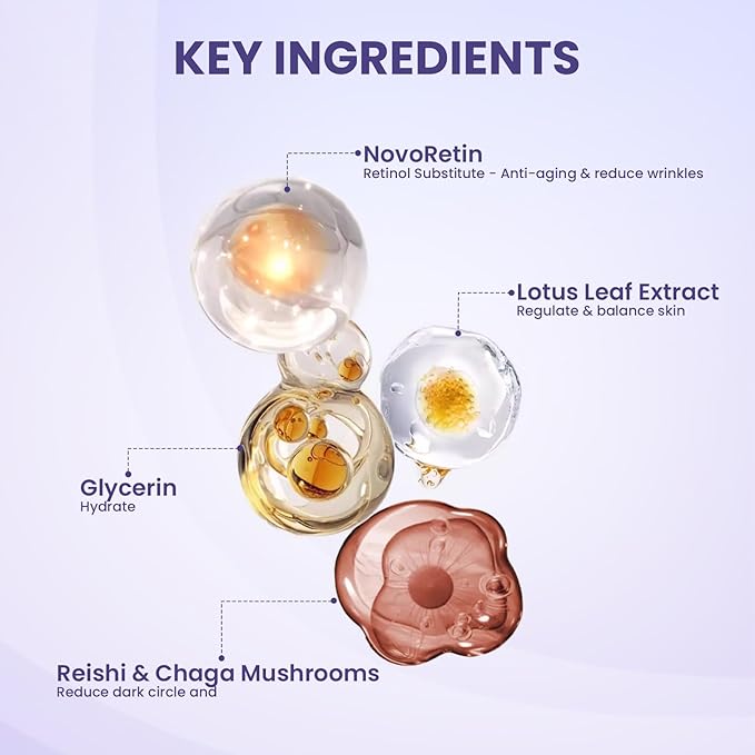 - RETINOL EYE CREAM - Formulated with NovoRetin, a plant-based retinol alternative, this eye cream provides powerful anti-aging and wrinkle-reducing benefits for the skin under the eyes.