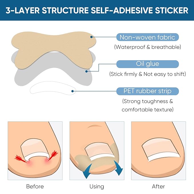 - 【Perfect for At-Home Nail Care】The Ingrown Toenail Corrector Patch is firm and fits well on toenails. Including 60 * ingrown toenail Corrector patches, 1 * toenail file, and 1 * toenail lifter in the set, which fully meets your daily nail care needs.