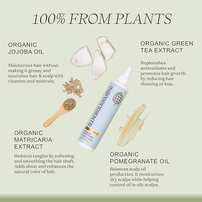 - SILICONE FREE & SULFATE FREE LEAVE IN CONDITIONER FOR HEALTHY AND SHINY HAIR - This 100% from plants detangler is formulated to reduce frizz, detangle, and smooth your hair while at the same time adding shine and bounce to your hair.