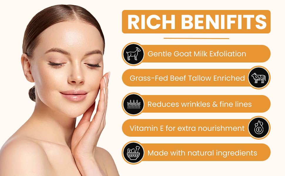 - Luxurious Organic Blend: Our goat milk moisturizer combines grass fed beef tallow and goat milk, crafting an opulent, natural moisturizer. This organic concoction nourishes skin, offering a luxurious experience unlike any other, perfectly suited for those who cherish natural beauty care.
