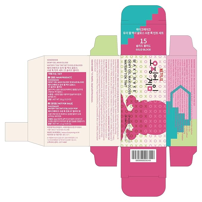 WM X NETFLIX SQUID GAME Dewy Gel Maxi Gloss 15 Solid Blood Set (+Watery Tok Tint Mini 7 Bloody Pop), lips, korean lip