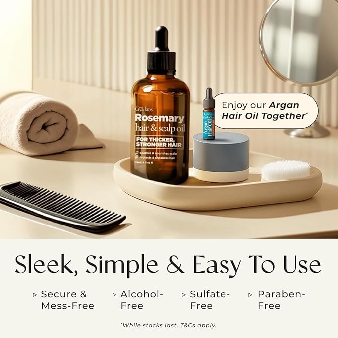 - Reduces Hair Loss: Gya Labs' rosemary oil for hair growth is scientifically formulated with rosemary, castor, and argan oils to activate hair follicles, and foster a healthier scalp environment for hair.
