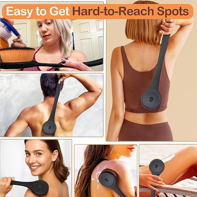 - FABULOUS BRUSH SET FOR BEAUTY: Ultra-soft, dense and high elasticity vegan bristles provide a velvety and comfy caress for the ultimate comfort efficient streak-free application. Perfect for applying lotion, sunscreen, tanning foam,self tanner or any self tan back application. Good for flawless makeup for powder, liquid, concealer, cream, blush, foundation and body shimmer powder. Only a small quantity of product on the brush is needed for the best results