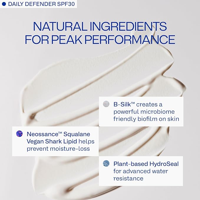 - SUPERIOR SUN PROTECTION: The Daily Defender SPF 30 offers powerful, broad-spectrum UVA/UVB defense, while also protecting against blue light and pollution. This lightweight sunscreen is 40 minutes water-resistant, making it ideal for outdoor activities.