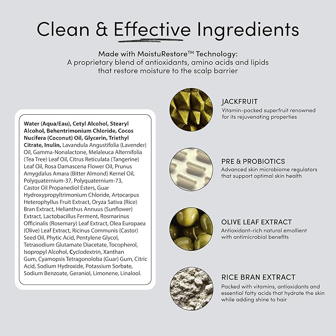 - Clean and Nurturing Formula: Enjoy a Sulfate-Free, Paraben-Free, Phthalate-Free, and Dye-Free formula crafted for sensitive scalps. Powered by jackfruit for rejuvenation, olive leaf extract for emollient care, pre & probiotics for scalp balance, and rice bran extract for hydration and shine, it delivers lasting moisture and healthy, vibrant hair.