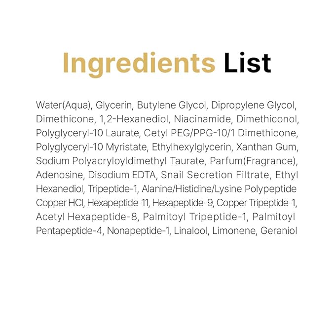 - [A Powerful Anti-Aging Blend]: Not only enriched with Peptides and Snail Secretion Filtrate, but also formulated with well-known skincare ingredients like Niacinamide, Glycerin, Adenosine, and Ceramide NP, this ampoule deeply boosts skin textures, improves fine lines & wrinkles on your skin and promotes a firmer, more youthful glow.