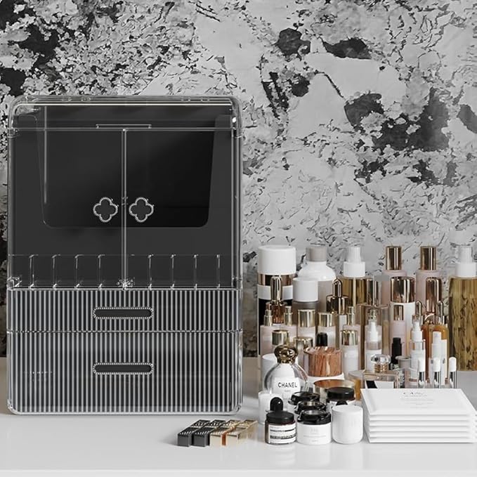 - ✅ Dustproof & Waterproof Protection – Designed with transparent acrylic doors, this cosmetic storage box keeps your makeup safe from dust, moisture, and spills, making it perfect for bathroom countertops, vanity desks, and dressing tables.