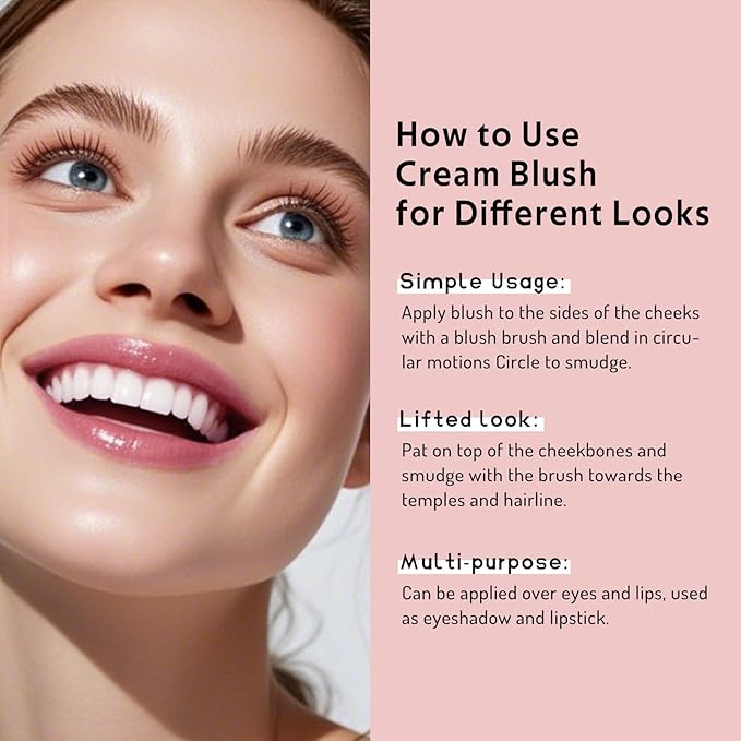 - VERSATILE CREAM BLUSH: This makeup cream Blush is suitable for various makeup needs, and can be applied to the cheeks, lips, and eyes. With a variety of color options, it enhances all skin tones for a natural, radiant finish.